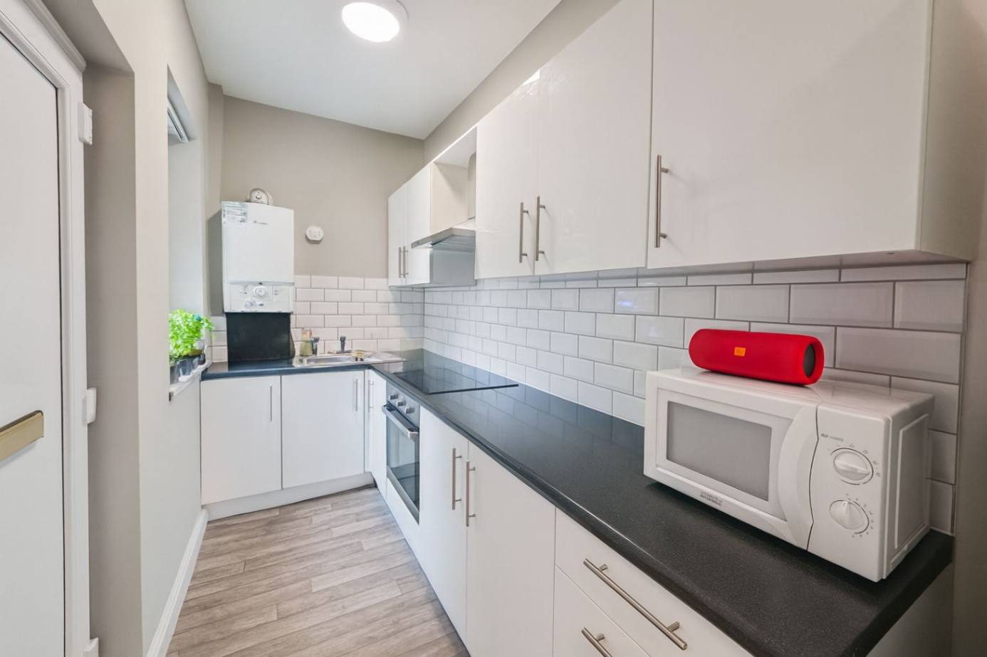 The property benefits from a LOUNGE with a flat-screen TV, MODERN bathroom with bath and shower over, kitchen with fridge/freezer, oven and microwave. The house also has a separate large UTILITY room with washer and dryer. The property has a security alarm fitted, security lighting and there is a YARD to the rear of the property.