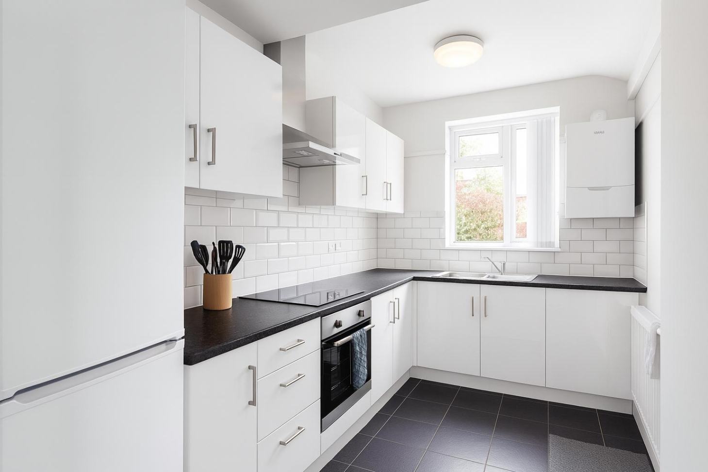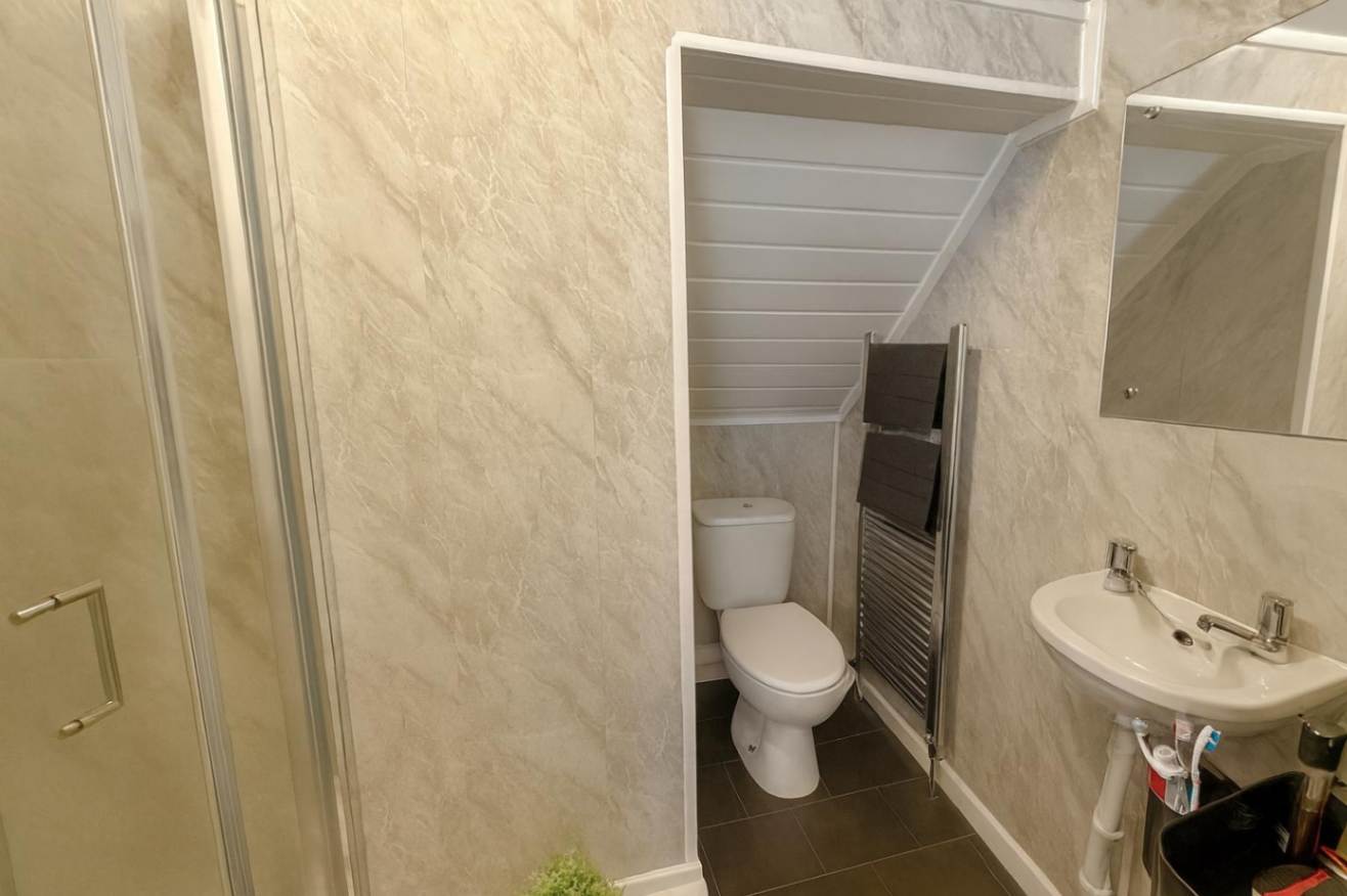 A deceptively SPACIOUS END-TERRACED four-bedroom house.  All bedrooms are complete with a MODERN EN-SUITE and they are all double rooms. This house has a separate LAUNDRY ROOM downstairs fitted with a washer, dryer, and clothes drying racks. The lounge is fitted with a flat-screen TV. and the MODERN kitchen features a fridge/freezer, dishwasher, oven, and microwave. There is also bicycle storage to the rear of the property.