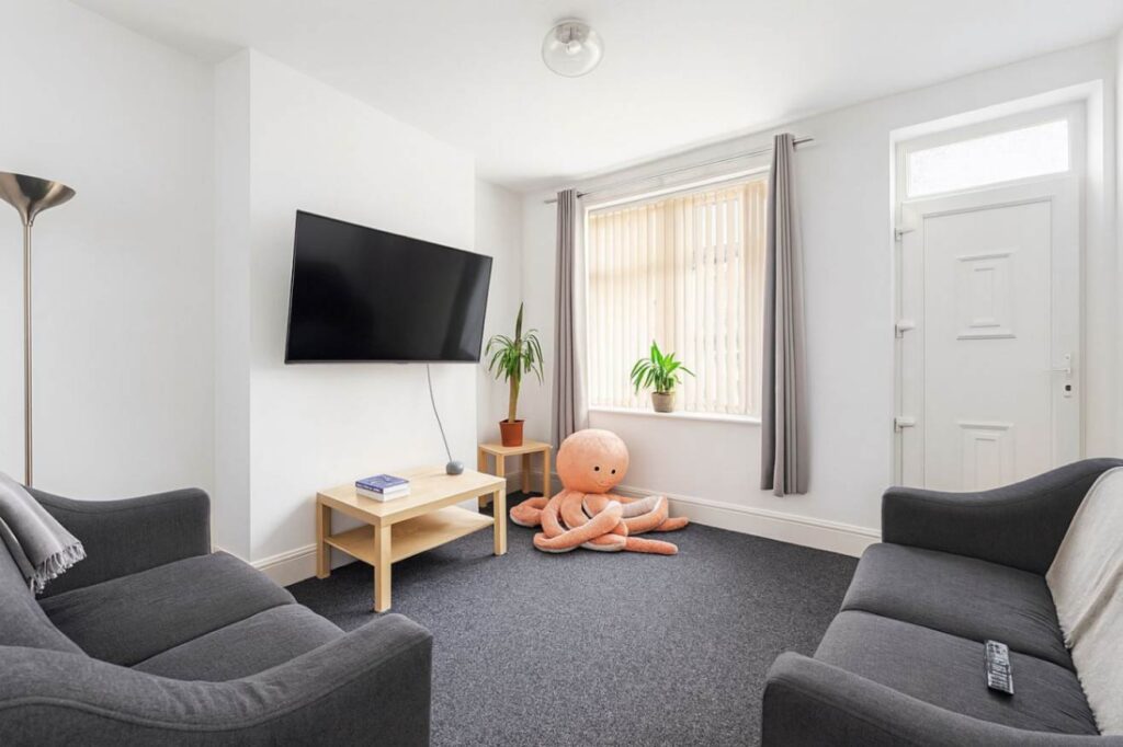 This house has been accredited with a Silver Standard Award for the former scheme, Green Impact Student Homes, through the University of Sheffield and as such has thermal curtains and blinds, low energy lighting, thermostatic radiator valves and is very well insulated. More about this scheme can be found here.