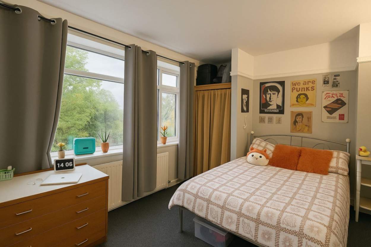 This house has been accredited with a Silver Standard Award for the former scheme, Green Impact Student Homes, through the University of Sheffield and as such has thermal curtains and blinds, low energy lighting, thermostatic radiator valves and is very well insulated. More about this scheme can be found here.